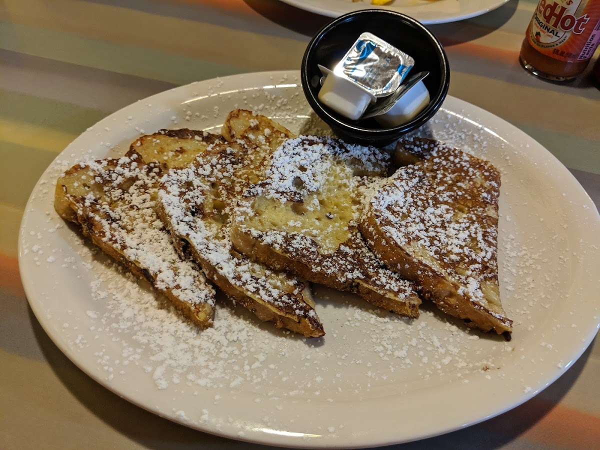 We were in town to visit family but stopped in here because Neil's donuts was closed. The wait was a little long but the staff was friendly and quick. We both got the biscuits and gravy specials and the stuffed french toast with walnuts. The food was amazing we cleared our plates some of the best breakfast we've had in a long time!